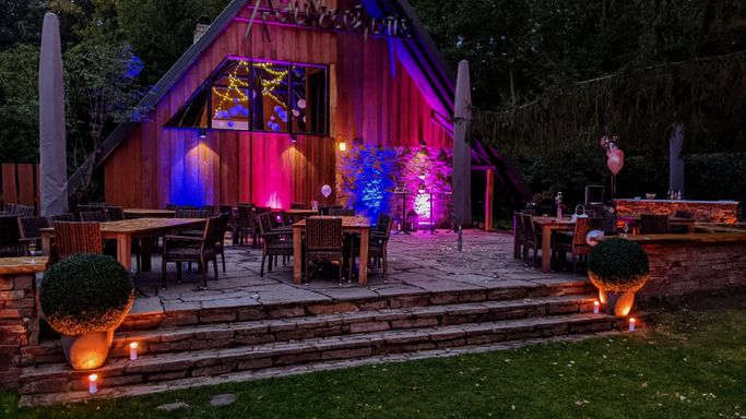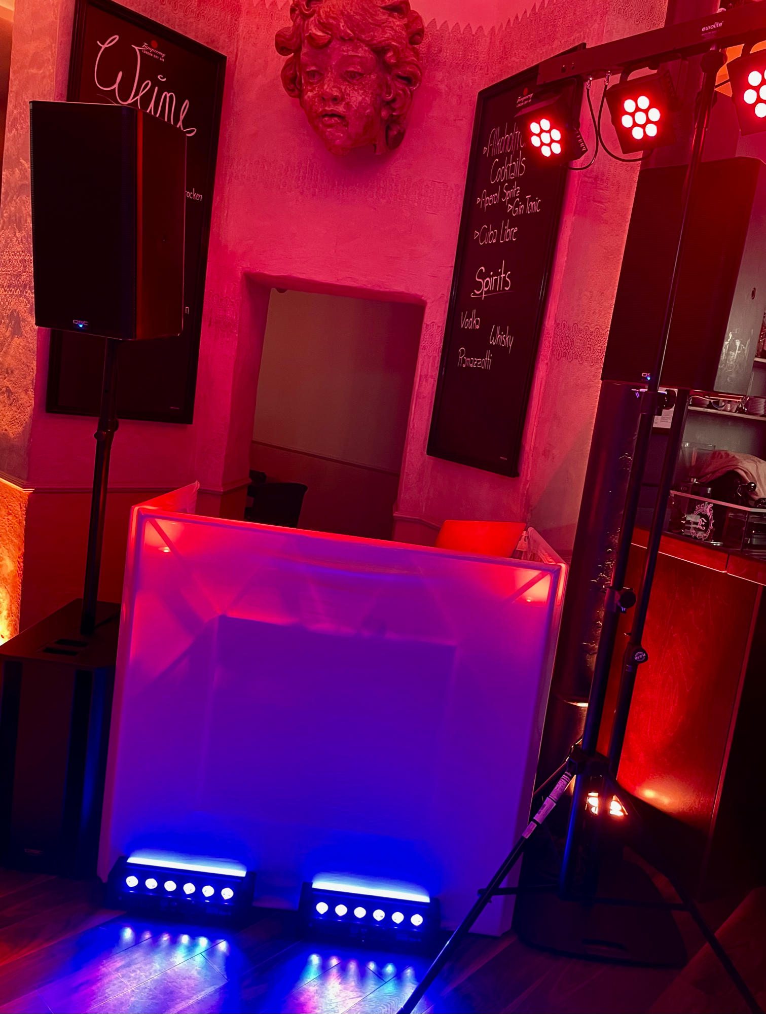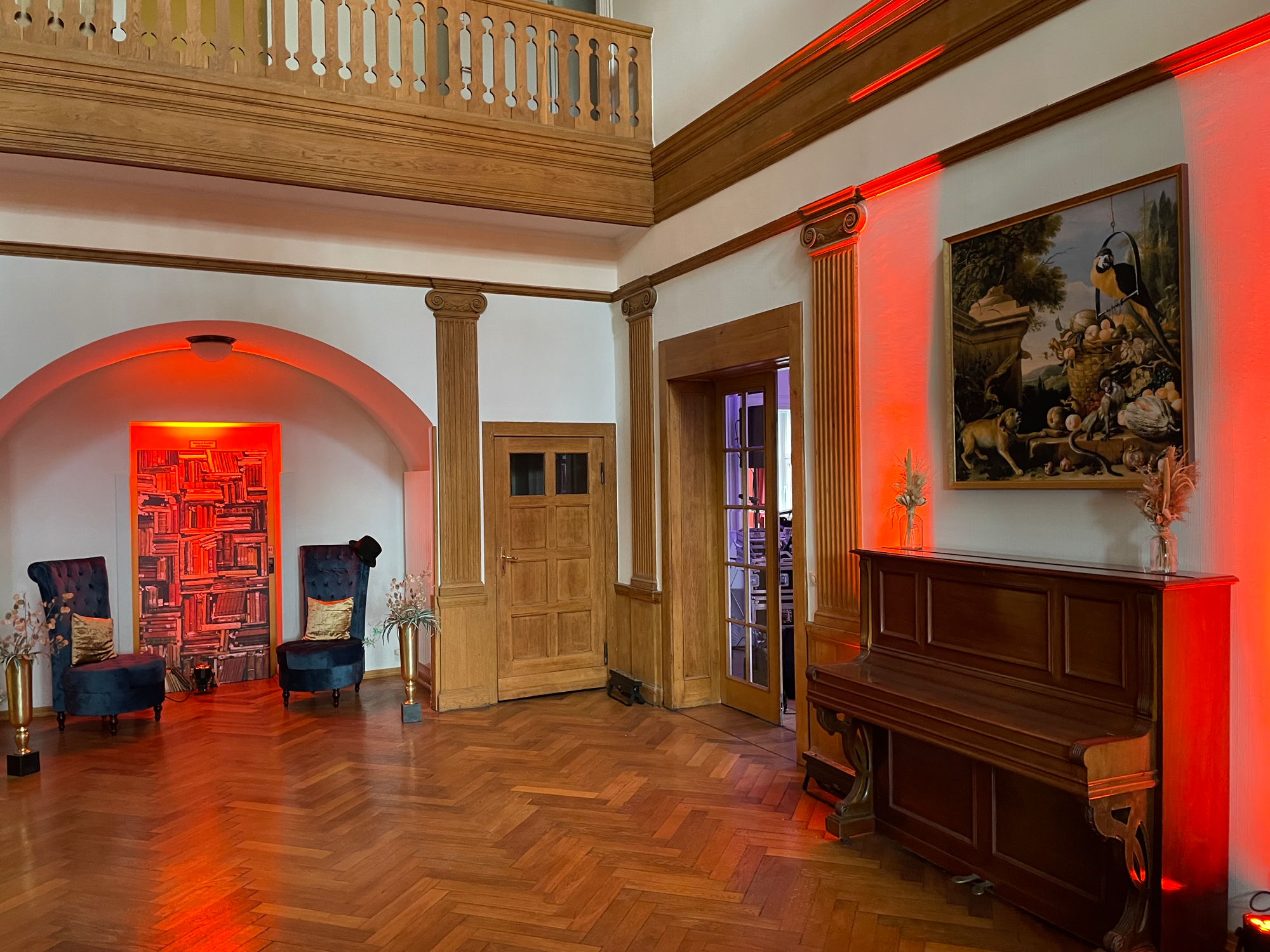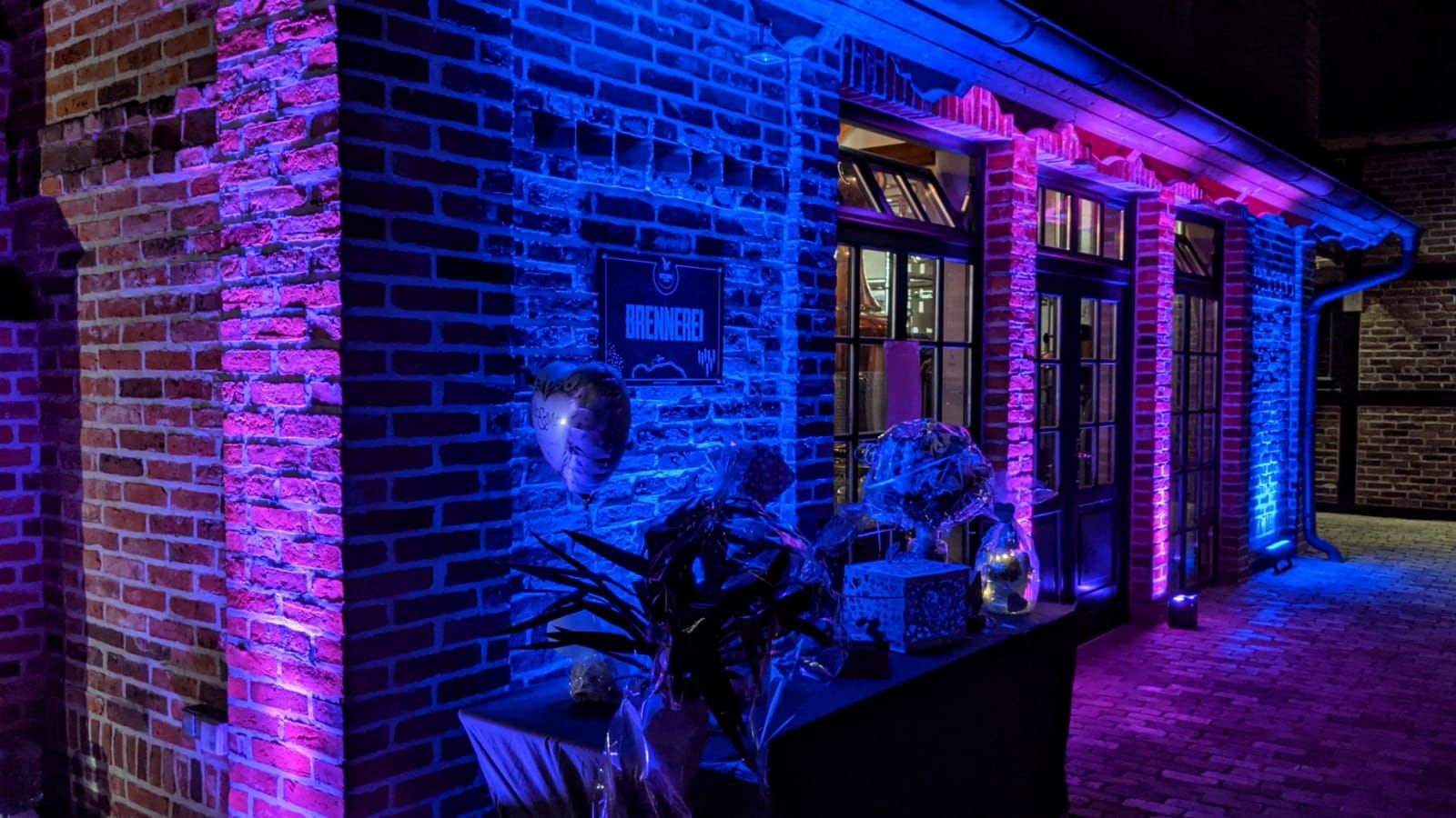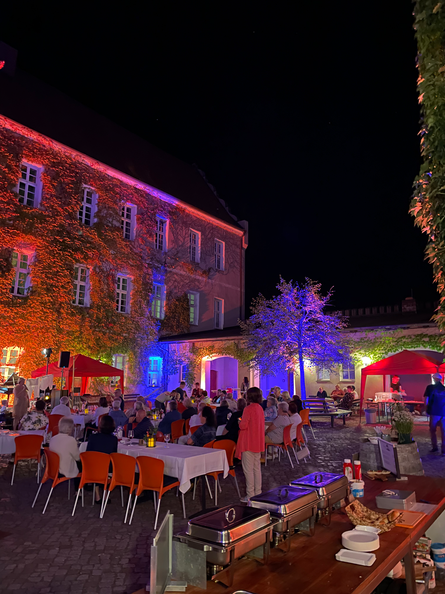 Hier war es unsere Aufgabe bei einer Veranstaltung einen Schlosshof zu illuminieren und eine passende Stimmung für die kulinarisch sommerliche Stimmung zu erzeugen.